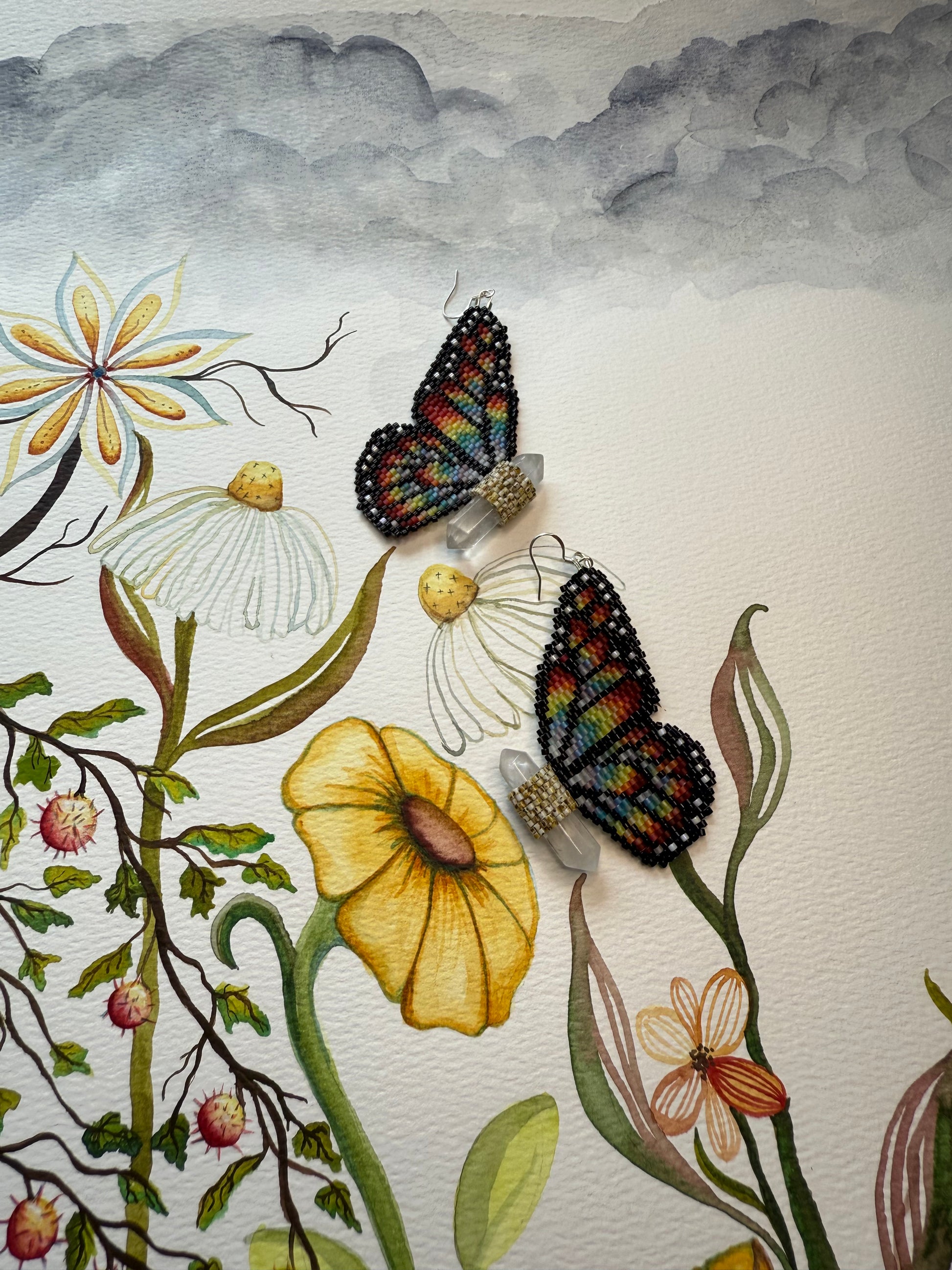 A Rainbow Butterfly Earrings with Quartz Crystals (Large)