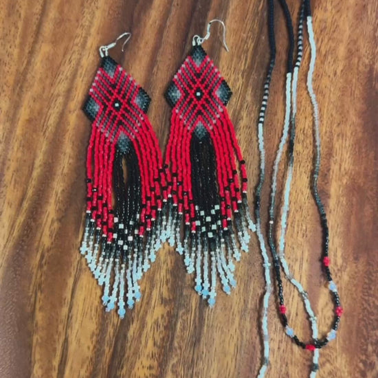 Four Directions earrings, Sterling Silver Earring Hooks, Delica Beads, Vintage Crystals, Opalite Stones.